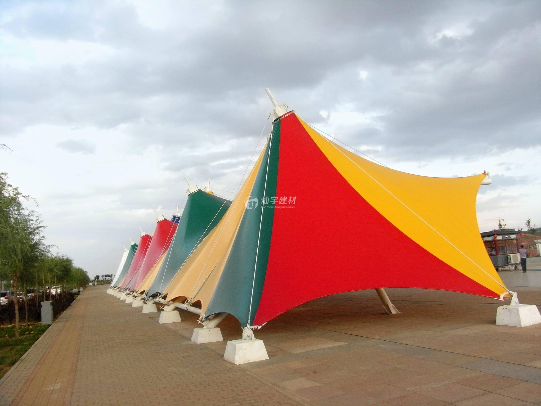 燦宇彩色膜結構景觀棚,還有其它顏色可選,紅黃藍綠青蘭紫迷彩色滿足不同客戶的個性需求 定做熱線400-799-8099蘇州燦宇車棚